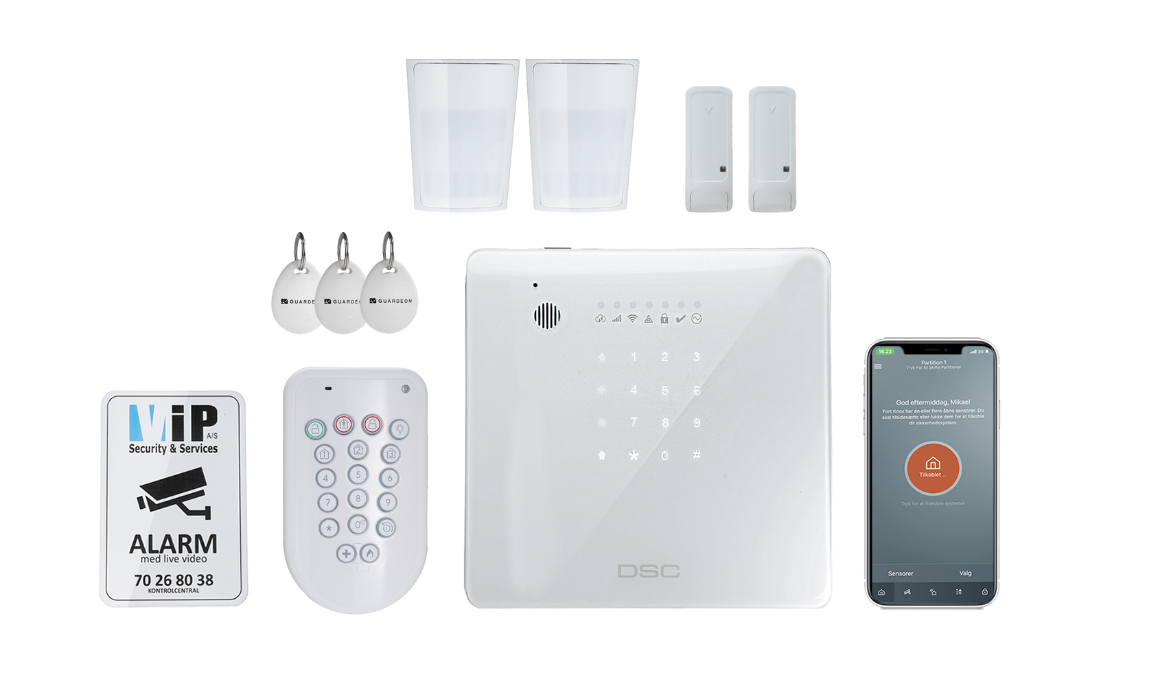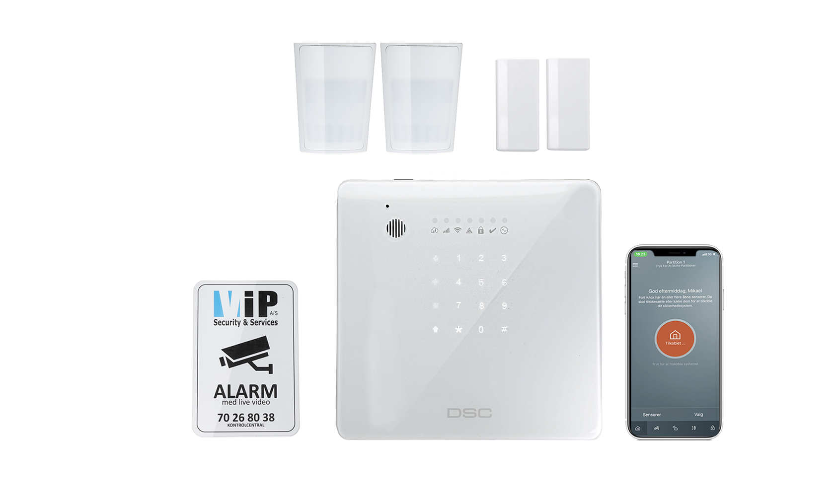 Den viste pris er en kampagnepris. ( normal pris kr. 4.995,- ) *12 mdr. bindingsperiode. Privat alarm services pr. måned kr. 235,00 inkl. moms Priser er gældende for Sjælland. Alarmpakken kan tilpasses efter ønsker og behov.