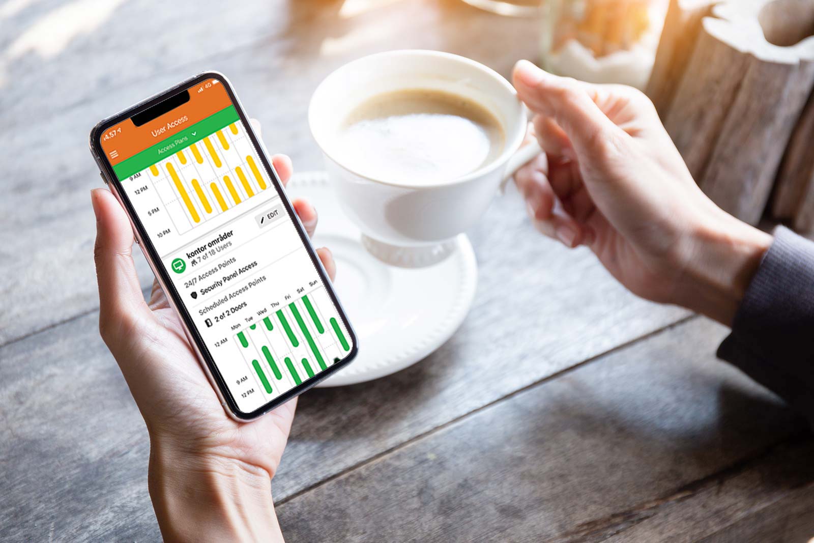 Via din app på telefonen kan du nemt og hurtigt administrer alle bruger og adgangskontrol indstillinger i systemet.
