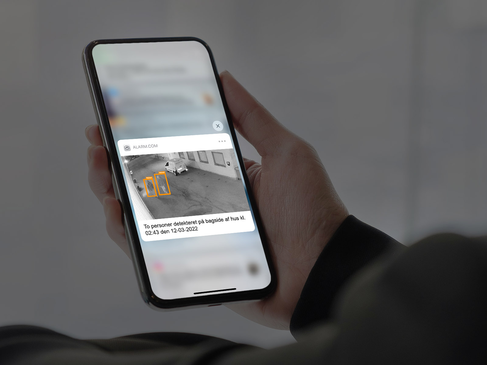 Med vores intelligente (AI) smart kamera tilsluttet vores smart cloud, kan du ikke blot følge med live men også se video optagelser op til 30 dage, samt integreres med vores smarte alarmsystem og adgangskontrol.