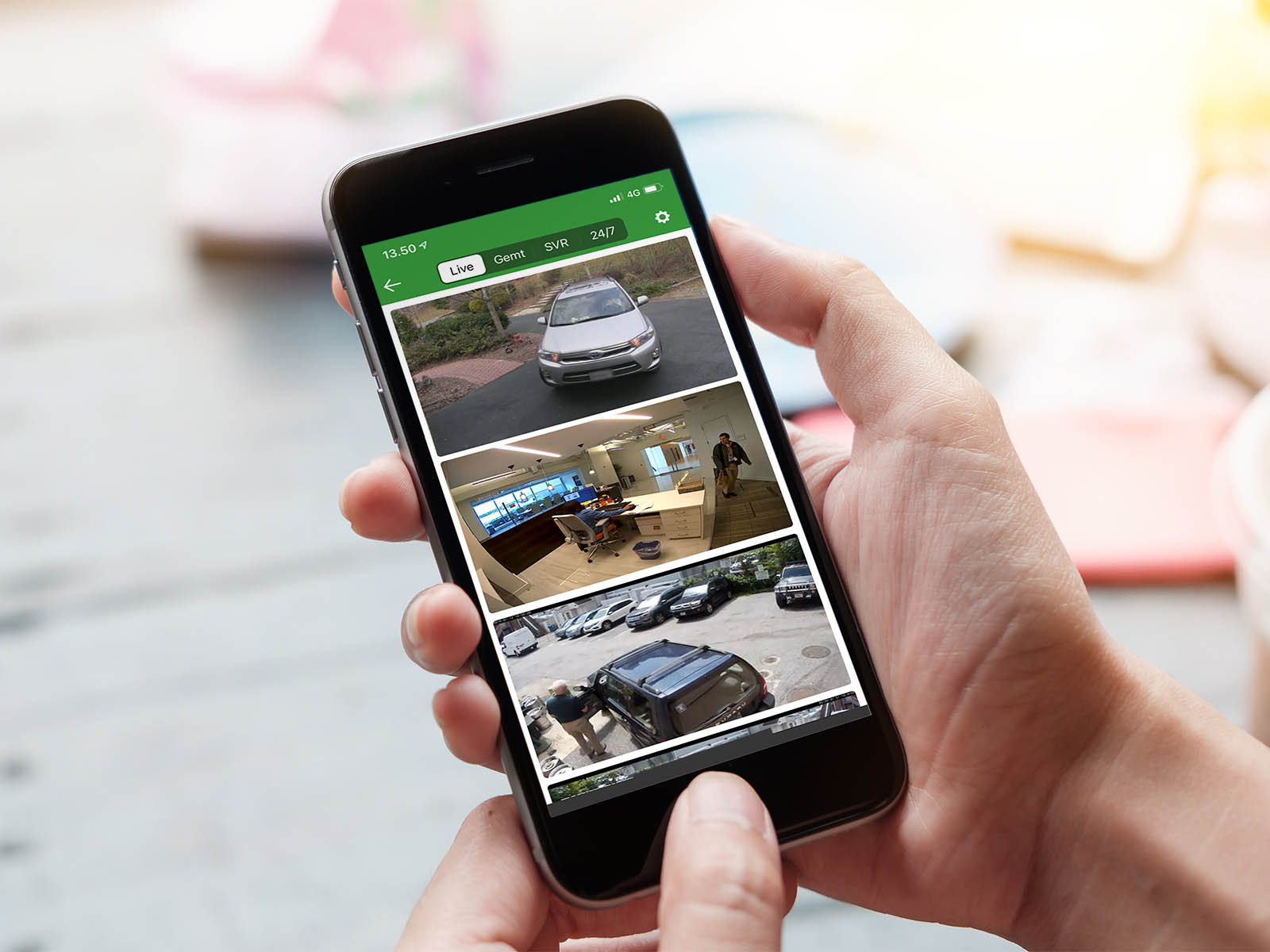 Ved brug af vores App vil man altid kunne tilgå alle de intelligente kamera som sikre virksomheden. Med blot et enkel tryk på det ønsket kamera i alarm Appen, vil man kunne se live højopløst video fra kameraet, og derefter nemt kunne bladre i mellem alle de installeret kamera.